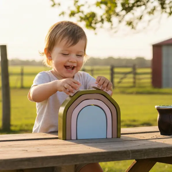 Su forma geométrica y tamaño lo hacen ideal para acompañar a niñas y niños en las primeras etapas del juego constructivo y creativo.