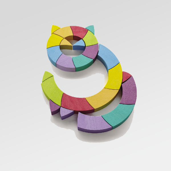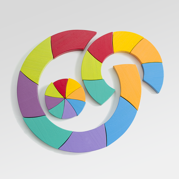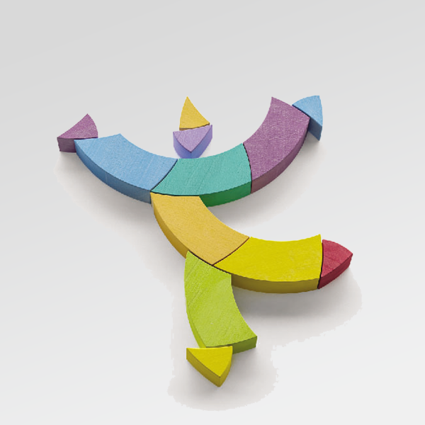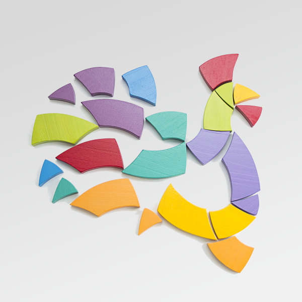 Sus piezas invitan a explorar el color, las formas y el equilibrio desde una mirada sensible, permitiendo armar y desarmar el círculo o dar lugar a múltiples composiciones libres.