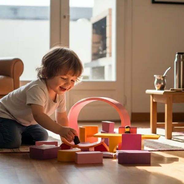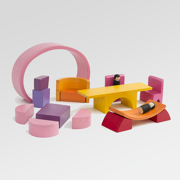 Un conjunto de bloques de madera que invita a crear espacios cotidianos llenos de juego y significado.