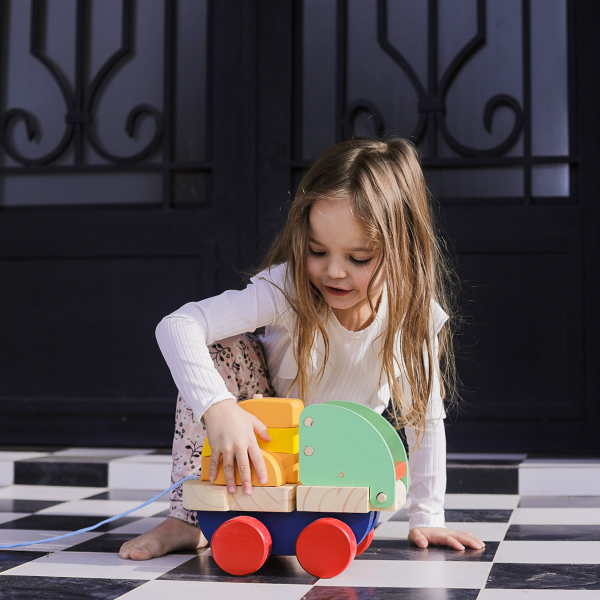 A través de la carga y descarga de sus bloques, acompaña el desarrollo del juego simbólico, la imaginación y la creación de escenarios propios.