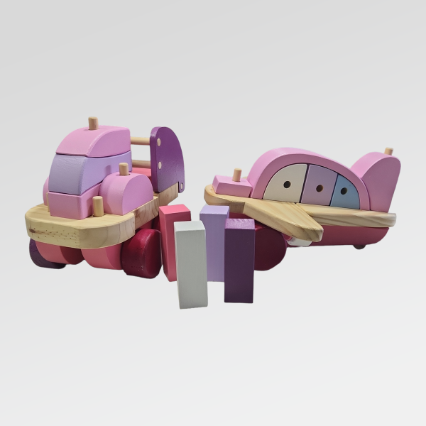 Un camión de carga de madera que combina juego constructivo y movimiento, invitando a explorar el transporte y la organización de la carga desde una mirada lúdica y creativa.