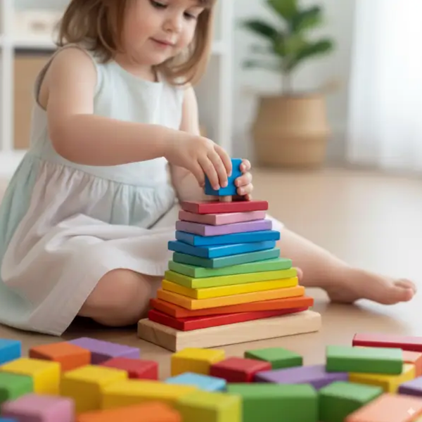 El apilado progresivo invita a observar secuencias, experimentar el equilibrio y sostener la atención durante el juego.
