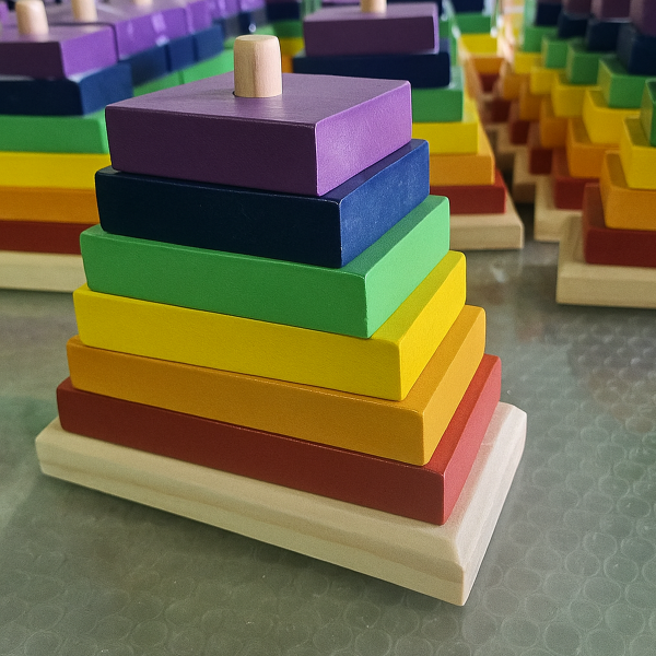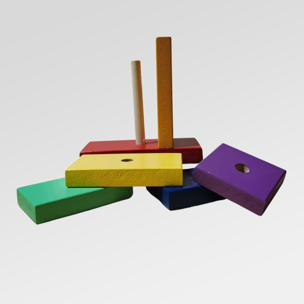 Invita a explorar tamaños, equilibrio y orden, favoreciendo una experiencia de juego tranquila, concreta y significativa.
