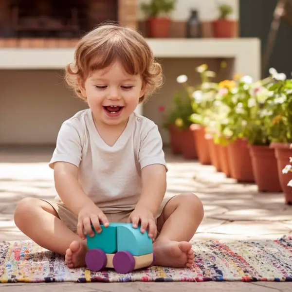 Invita a cargar, trasladar y reorganizar materiales dentro del juego simbólico, acompañando la creación de historias donde el movimiento y la acción son protagonistas.