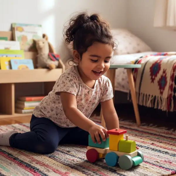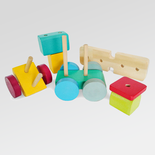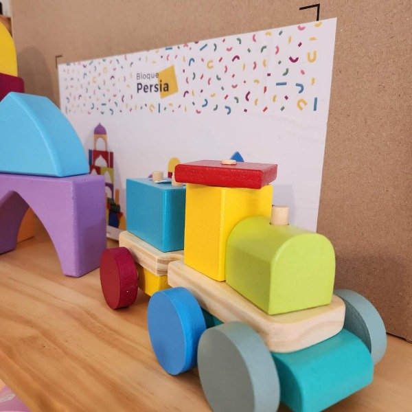 Esta mini trochita propone, con sus tonos cálidos, un juego sereno y abierto, donde el armado y el movimiento se combinan naturalmente.