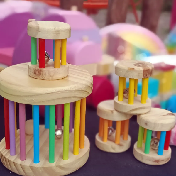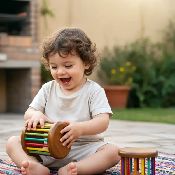 La Sonaja Rodante de Madera es un juguete musical pensado para acompañar a los más pequeños en sus primeras exploraciones de movimiento y sonido.