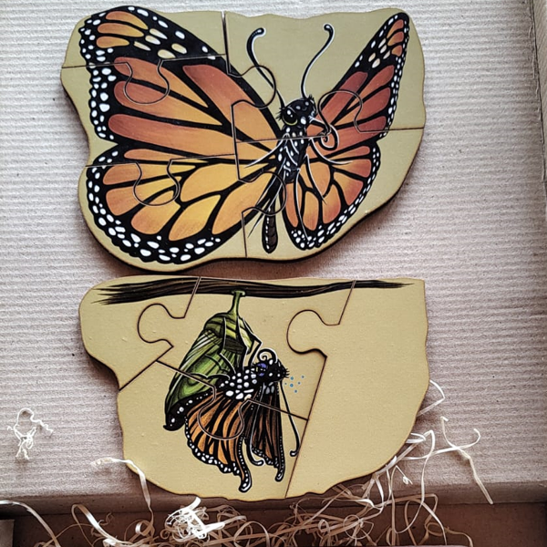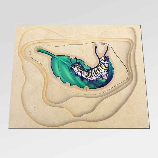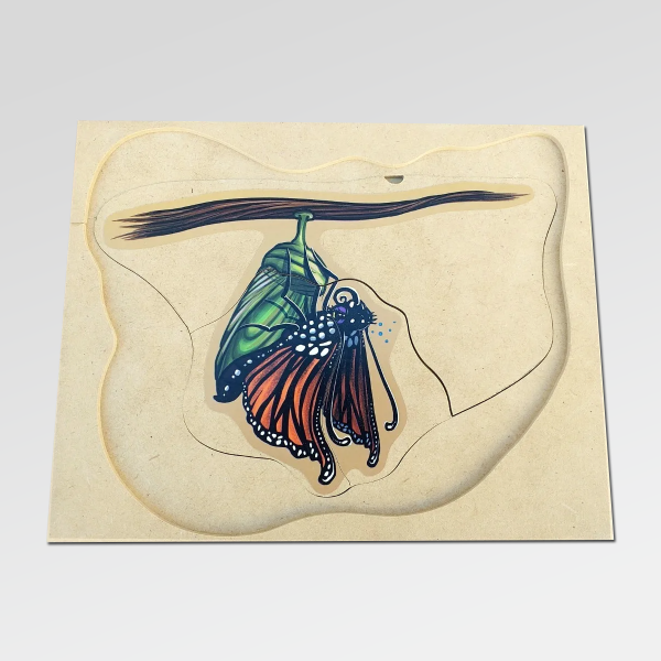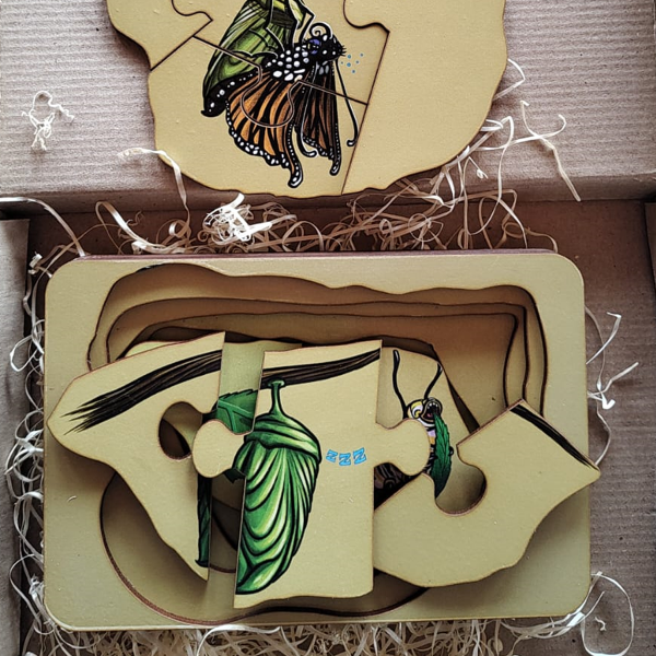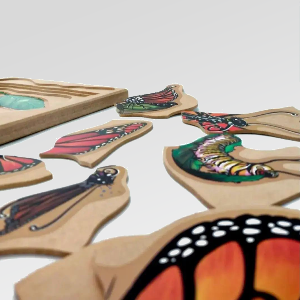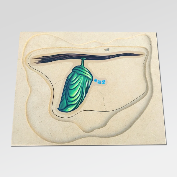 Un rompecabezas de madera en capas que invita a descubrir, paso a paso, uno de los procesos más fascinantes de la naturaleza: la metamorfosis.
