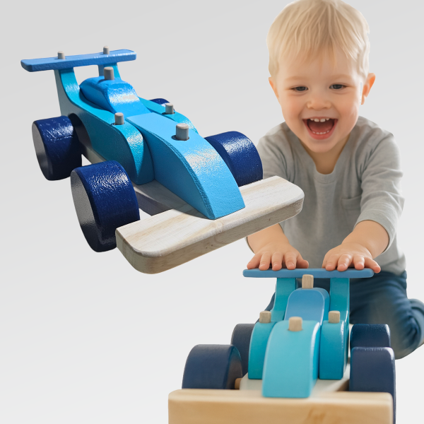 Un auto de madera que conecta la pasión por el automovilismo con el juego simple y auténtico.